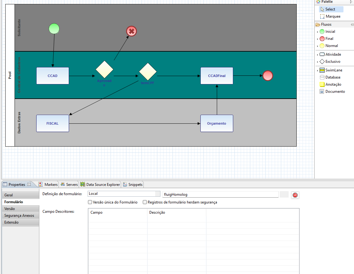Estou desenvolvendo um process e ao fazer alterações nele simplesmente o eclipse nao salva a informação de onde é meu formulário, isso faz com que ao exportar, meu processo fica sem formulário. Alguém sabe o que pode ser feito? Também reparei que os campos descritores não aparecem e não consigo adicionar eles.